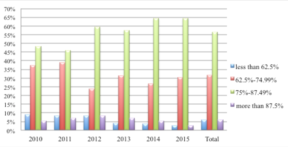 Contrary to conventional wisdom, merger votes are rarely close. An analysis of voting outcomes in domestic mergers with a contestable Russell 3000 target shows that: (i) very few transactions – roughly 1 percent – were voted down from 2006 to 2015 (sample size of 907); (ii) activist investors almost never campaign against pending mergers; (iii) most mergers were approved with high or very high margins from 2010 to 2015 (sample size of 392) (see the table below); and (iv) approval percentages in mergers are not correlated with the size of premiums offered to shareholders.