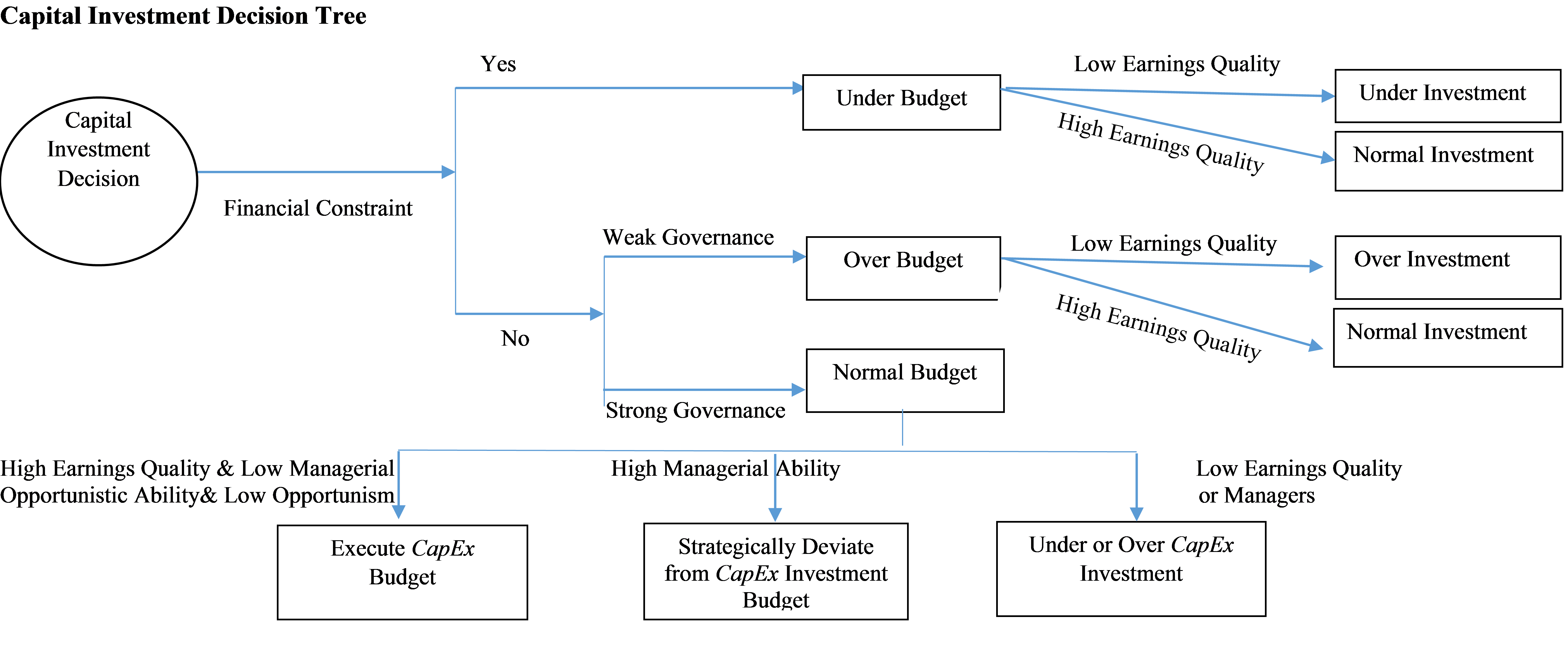 Dividing the capital investment process into two stages allows us to examine several important research questions about capital investment. For example, we know little about the degree of autonomy that managers enjoy in the execution of corporate budgets and the consequences of this autonomy on firm value and performance, if any. We know little about how boards are involved in capital expenditure decisions. Further, although we know that both accounting quality and corporate governance affect investment efficiency, their specific roles and interactions remain under-studied.