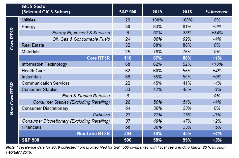 The table below reflects the prevalence of RTSR programs within selected industries.
