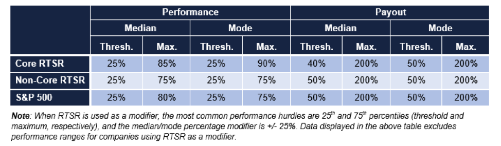 RTSR’s rise may be attributable to a confluence of factors, such as say-on-pay and the influence of proxy advisors pressuring companies to adopt performance-vested long-term incentives. Companies feeling pressure to adopt performance-vested awards and respond to unfavorable say-on-pay outcomes often turn to RTSR. It has been accepted as an objective, shareholder-friendly method for companies to demonstrate a commitment to performance-based pay that does not require a company to set goals—a difficult exercise for some companies.