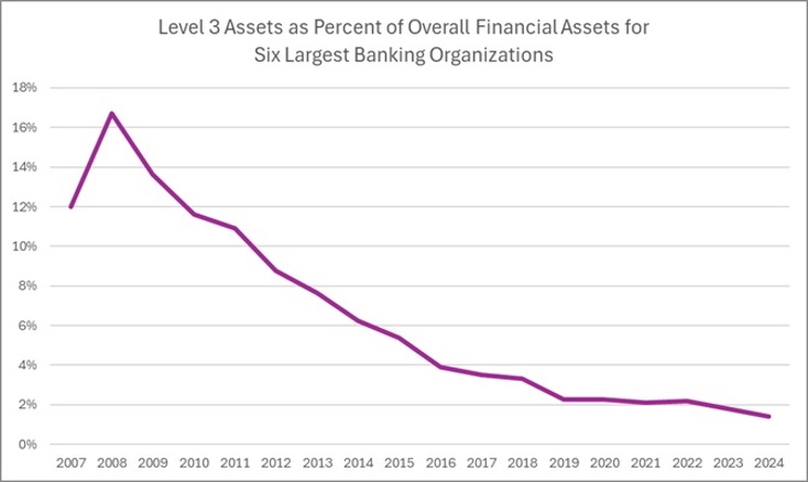 A major puzzle the trends pose is why the decline in Level 3 assets began well before the onset of regulatory interventions. As far as I have been able to determine, no relevant Dodd-Frank Act regulatory changes took effect earlier than the end of 2012. And yet significant declines in Level 3 assets preceded that period. Several non-exclusive hypotheses may explain the decline in the pre-regulation period.