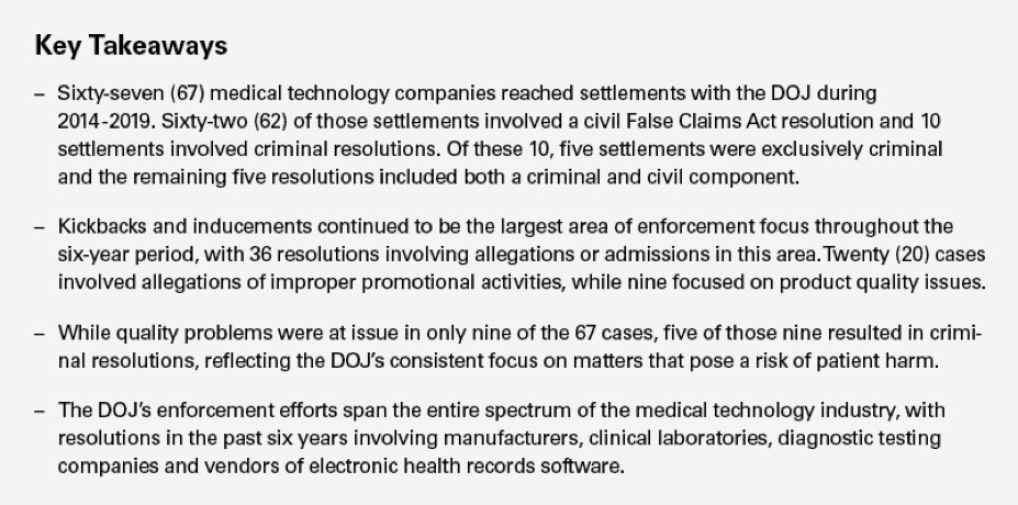 Kickbacks, Unlawful Promotion and Quality Issues Account for Most Medical Technology Cases