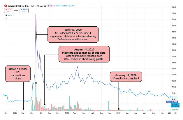 · Nominal defendant Genius Brands International (now known as Kartoon Studios) needed financing. · Genius approached a placement agent and investment bank (“the PA”) for help restructuring its debt and securing additional private financing. · The PA and Genius planned for a certain defendant (the “Lead Investor”) to be the lead investor in a PIPE transaction. |
